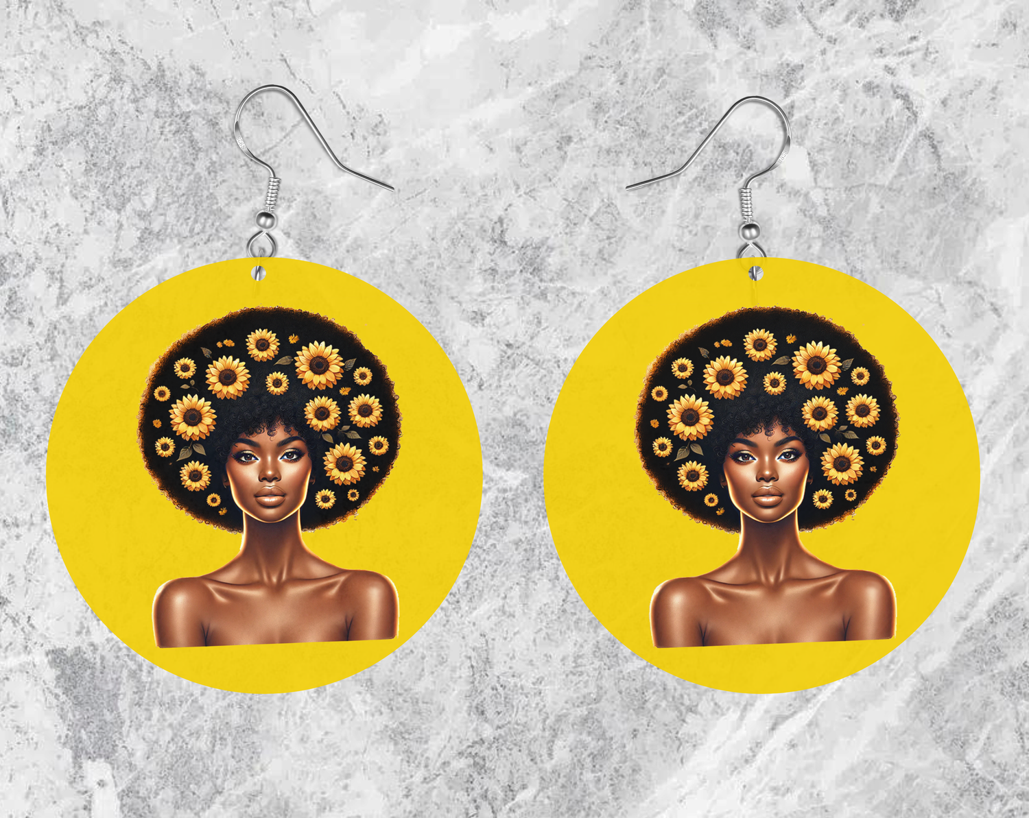 Stand out in our Sunflower Girl Print Earrings.