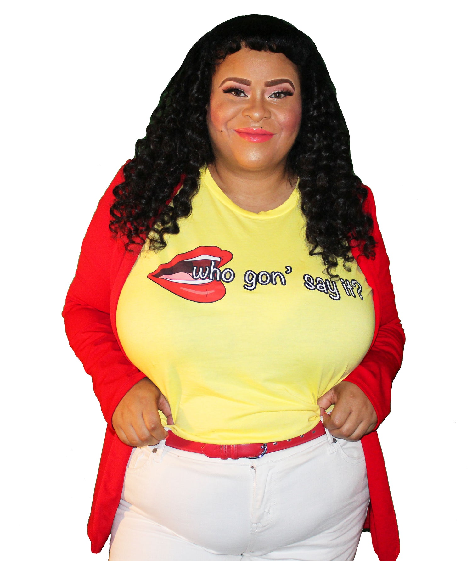 Our Who Gon' Say it? Signature Tee is made from 100% ring spun cotton. The shirts are preshrunk and topped off with our bold, catchy statement.